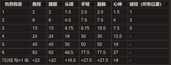 举例:我打中了乞丐的天灵盖,我的命中数值为6,那么就会造成3级的破绽,之后再计算伤害数值,要是也为6,则造成2点伤害,既头部的2层伤害标记。