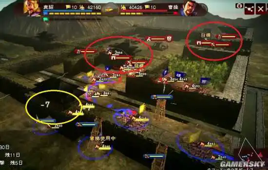 1、攻城战,内城可有2个城门,图内红圈处为内城城门,而且均有防御武器。