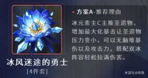如上面所说我们在选择圣遗物的前提是要带什么武器,如果大家不使用绿剑那我就先来介绍第一个选择