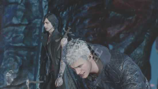 接着尼禄和神秘人V也一起登场了,V告诉尼禄就是这货夺走了他的手臂。之后V先走一步,尼禄跟在后面。