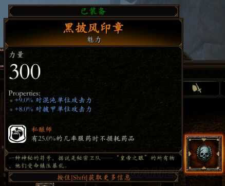 二首饰:对照4号,也就是药剂栏,推荐也是再来一瓶,或者就是50%额外时间,或者共享队友药剂效果,后面两个特效感觉队伍里的矮人和精灵洗出来比较好,赏金本身不推荐。