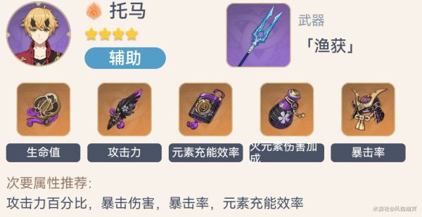 《原神》托马是最近加入游戏的四星角色,因为获取较为容易,很多玩家已经得到了他,想要了解角色装备如何选择的话请看下面“风伤幽冥”带来的《原神》托马各流派配装推荐,希望能够帮助大家。