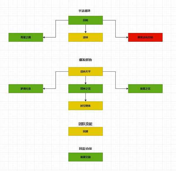 而且[回响]的核心之处还在与它可以对同一个目标进行复制,对目标A使用[回响],再使用其他技能,比如救急的时候,可以直接回响+青翠之拥,超级大单体爆发,比圣疗有过之而无不及。