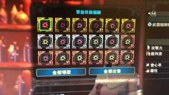 赤龙部位破坏得多=调查进度高=更多可选武器和可保留武器,更多高级光石。