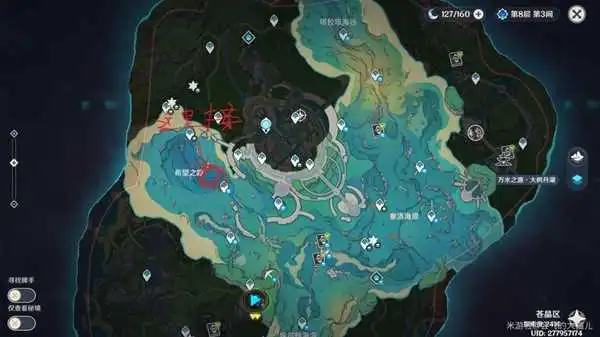 这个需要做海洋书世界任务第二幕“梦与赭黄色的渐变”,开始先在下图红圈那里接蓝色感叹号世界任务海洋书第一幕“海沫与流红的绘染”,一直跟任务做到第二幕,在第二幕的任务途中就能解锁1号隐藏锚点了!