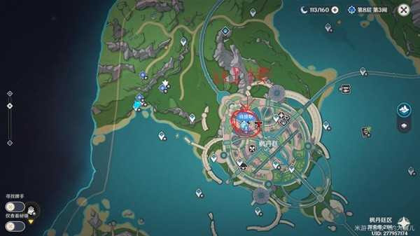 这个需要做一个叫“水色潮痕”的世界任务,开始先在下图红圈那里找到NPC“维吉尔”接蓝色感叹号世界任务,之后一直跟着做任务的途中就可以解锁2号和3号隐藏锚点了!