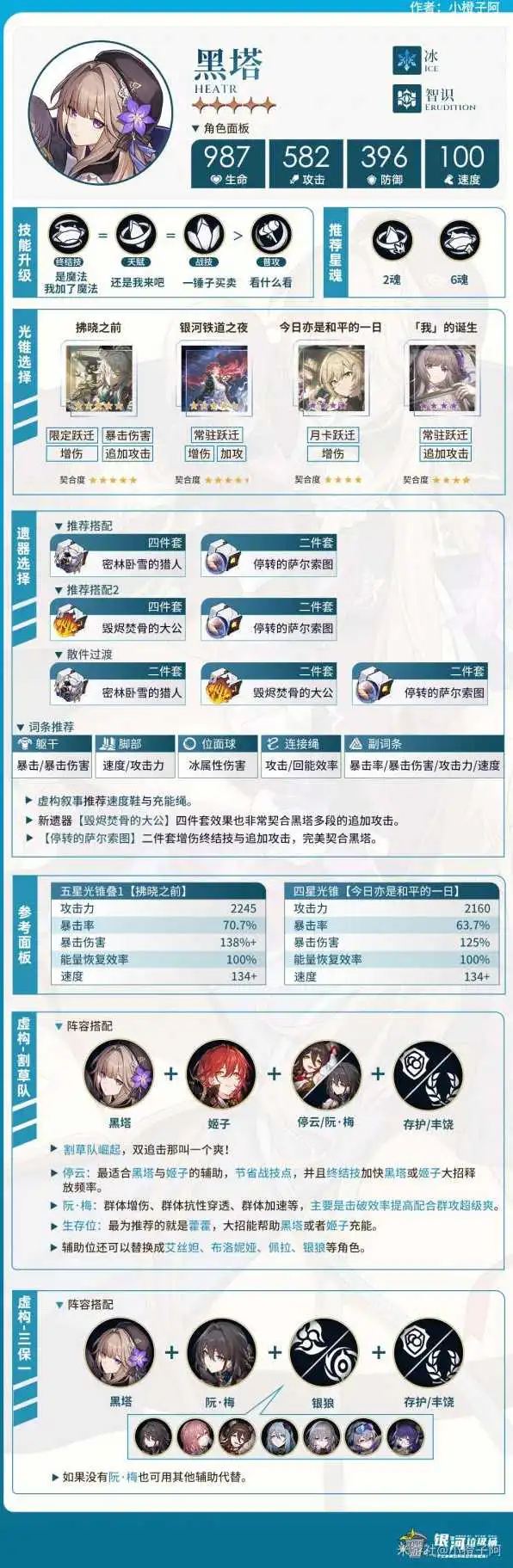 因为姬子与黑塔机制有很多的相似性,又都是典型的吃攻击与双暴加成的C位,因此两人有很多能用的光锥(一图流中有的并没有提及)。