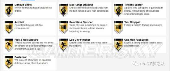 徽章方面,紫盖伊同样拥有10枚金章,它们分别是:高难度投篮手、中距离神射手、坚韧得分手、特技演员、强力终结者、抛投大师、战术挡拆大师、空接达人、单人快攻和隔扣达人。