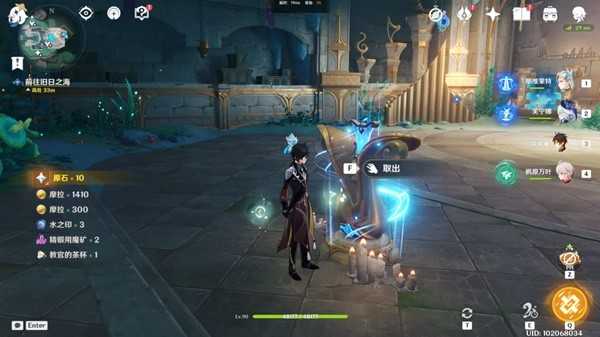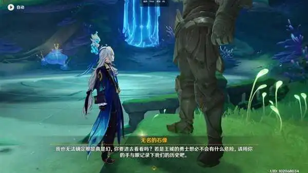 进去后与水神瞳旁边的无名石像对话,开始挑战