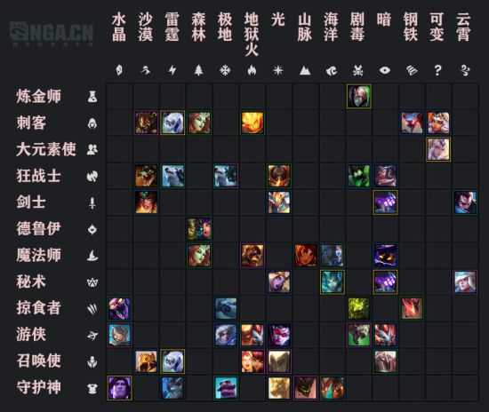 中期英雄羁绊:3森林3刺、6光2云、6光2剑、4极地2游侠、4暗2剑、4沙漠2剑、3火3召唤、3火2游侠、3法2海洋