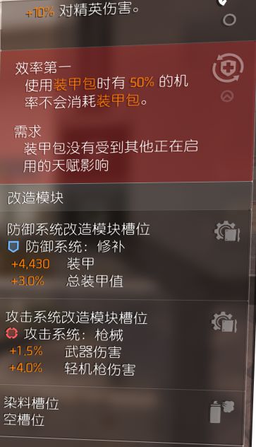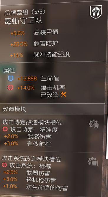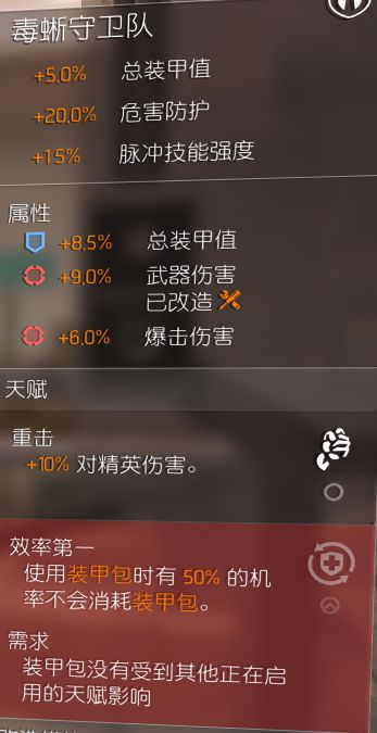 其实也没什么好说明的,看了具体配置应该差不多都能懂,pts上更新了牢不可破,需要11点蓝色,穿插槽最多的毒蜥套就是了,我的背包的天赋还不是完美的,为了武器伤就只能放着天赋不管了,效率第一和牢不可破冲突的情况下,想用牢不可破需要先穿牢不可破,再穿效率第一吧。