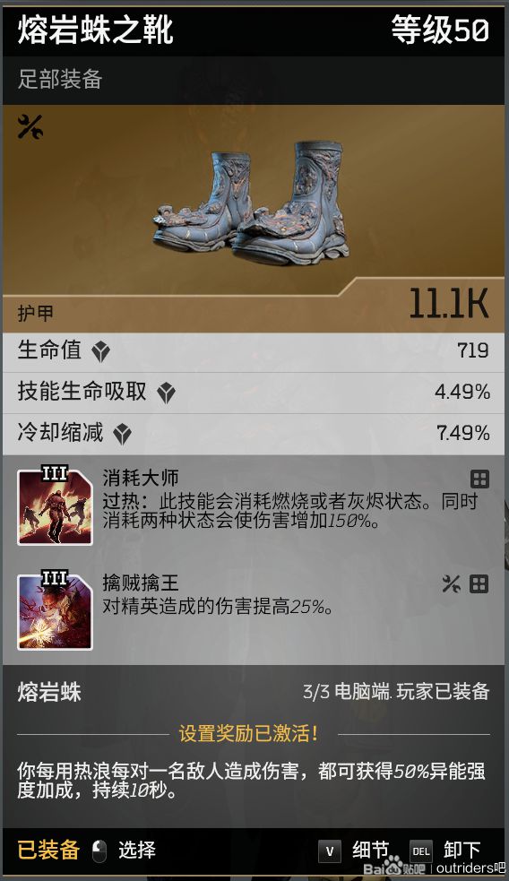 思路是不靠目前主流的蜘蛛衣上的减少过热CD进行高频输出回血,而是靠蜘蛛鞋以及折磨头上的三级模组提升过热伤害进行输出,并通过职业技能点点出大量易伤用哀嚎或陨石等武器模组进行输出。