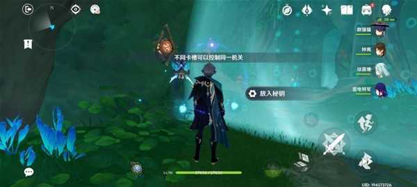 前方提示不同卡槽可控制同一机关,先将秘钥放入第一个装置内,光屏障消失,后面还有一个装置
