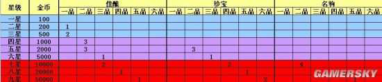 1-9星萌将招募材料一览表