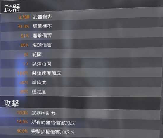 所以我的配装主要着重在武器伤害跟爆头伤害两者。