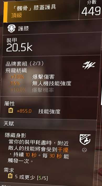 套组效果:飞龙纺织>+7%爆击伤害跟无人机技能强度的套组效果。