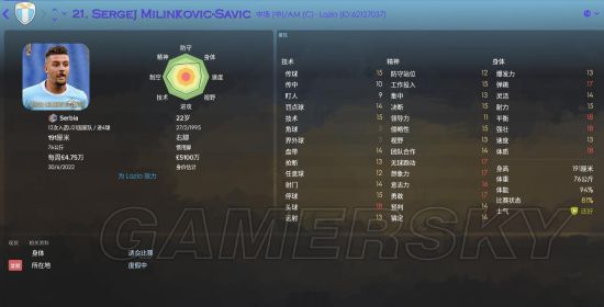 都灵前腰,技术、创造力极其出色的球员,传球16,传中16,技术18,角球16,盘带16,任意球16,停球17,想象力17,说实话,这样的属性分配出现在一名CA145的球员身上简直是逆天了。但利亚伊奇的问题在于过低的精神属性,尤其是工作投入。