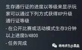 1.每日生存任务:这一部分占据经验总额的25%,如此大的一个比例所需要付出的,是每天超过5小时的游戏时长。