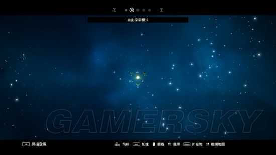按M开启星际地图,通常一定有一个是自由模式,如果你有环宇任务,还可以切至环宇模式,另外,还有航向中心的模式,进星际地图下方有按键说明。