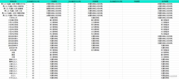 怪物掉落根据生命值分为4个档位(第四个档位为生命值0也就是击杀时),各类怪物存在的档位各有不同