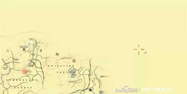 在前往的路上可能会遇到一只美洲狮,大约在这里,这也是美洲狮的一个固定刷点。在骑马到达特殊刷点附近,地图上的迷雾会解开。具体位置参考楼主的坐标。在这里会有个瀑布,目标就在瀑布下面,向前移动一段距离靠近观察,可以先拿出望远镜选择观察。