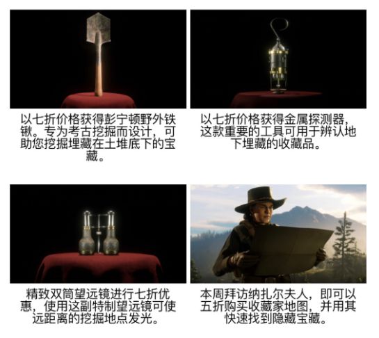 本周在Red Dead在线模式中,搜索世界各角落,寻找隐藏宝藏将为您带来更丰厚的报酬。以比原价少5根金条的价格获得收藏家包,开启收藏家职业生涯。如果您已将Rockstar Games Social Club账户绑定至Twitch Prime账户,您还可免费获得收藏家包。