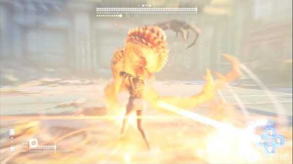 此时完美格挡特效,十分高亮,boss潜行兽基本上连招最后一招为慢招,看到抬手按住格挡就行,注意是按住!不要抖过头了
