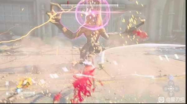 当我们防御住第一招的时候,好了这里疯狂抖刀,没错,疯狂按l1(前提是你得花费sp点亮更容易格挡点),此时你就是冒这种不是高亮的格挡特效。