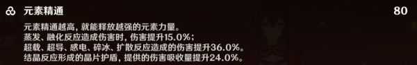 流浪大地的乐团2件套效果的80点元素精通提升,其表现为如图1所示,而可莉作为火元素输出角色,其与其他元素可以产生蒸发、融化、超载、火扩散以及火结晶。而魔女4件套中的反应增上效果(如图2所示)。