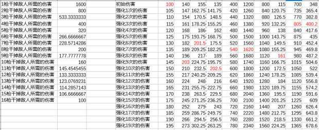 550伤害和700伤害,在面对人形怪的时候没有任何区别,因为打三级怪都是两枪,打精英都是三枪,所以说怎么强化枪械效率最高,看下图,红色是推荐。