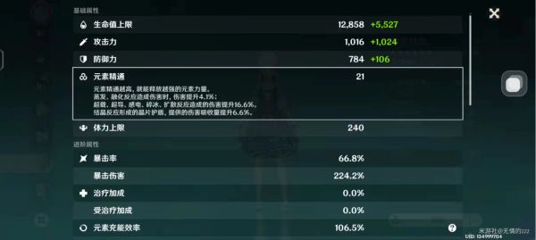 首先让我们先来看神里绫华的角色面板,就是当角色未穿戴任何武器和圣遗物时,角色本身通过升级与突破所带来的加成。当我们的神里绫华在完全突破到90级时,绫华本身总共能获得38.4%的暴击伤害加成,这一点属性对我们是十分不错的。