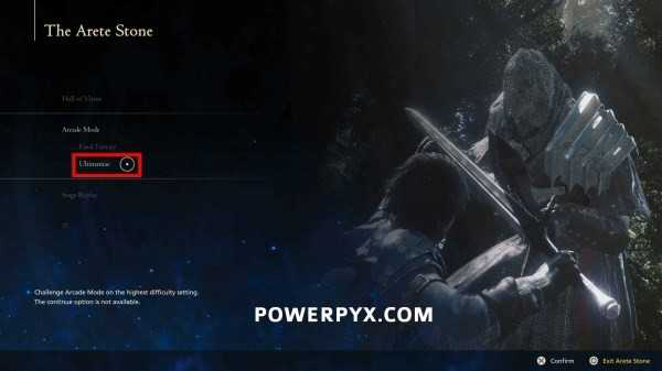 ⑤与藏身处中的ARETE STONE互动选择街机模式,在街机模式下即可选择比最终幻想难度更高一级的最高难度。