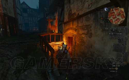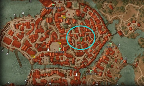 如上图已经把特莉丝的具体地点位置标注在了地图上,是在教主广场十字路口东北方向的一个二层小楼内。