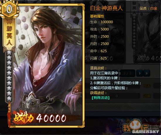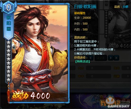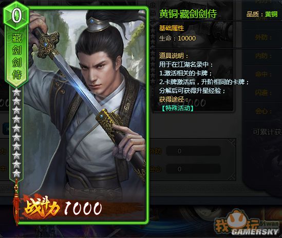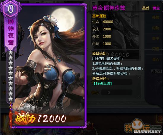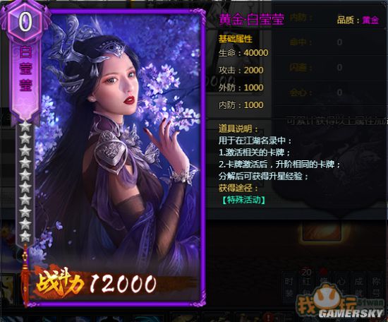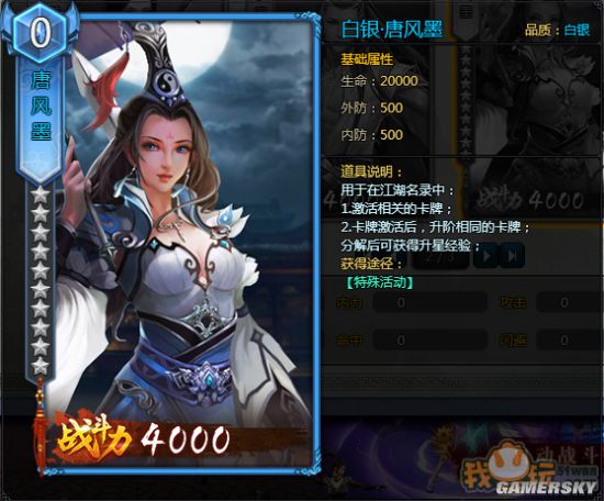 (2)卡片信息:卡片星数、阶数、品质、名称、所属系列、卡片说明、获得方式、属性值、战力值;