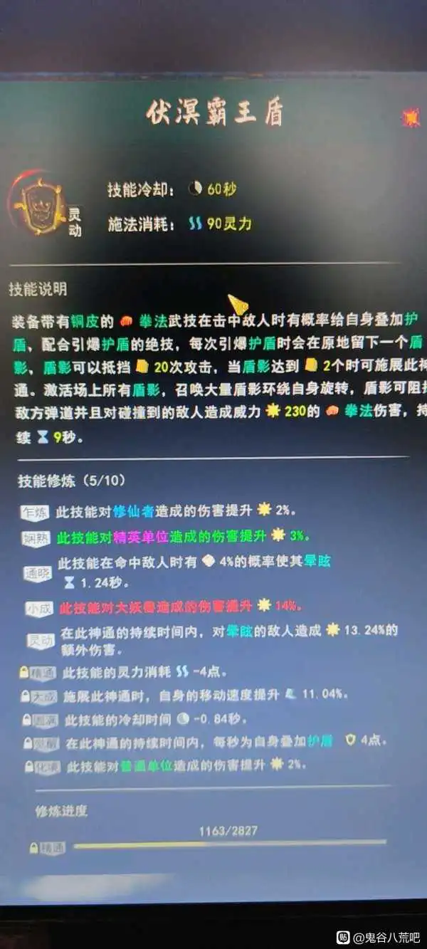 就是走铜皮流,配合绝技狮吼拳炸盾,炸盾之后神通会触发盾影的效果,这盾影很厉害,可以挡一切的弹道技能,只要不是穿透的,你就可以一直躲在盾影后面输出,打其他修仙者,就类似秦王绕柱的打法,盾影多了之后再加上叠护盾,就很肉了,而且两层盾影可以开神通,神通类似小宝的盾,但是范围大,而且有伤害,有的神通的词条还带有眩晕,这就可以帮助剑灵定位,也有机会打断修仙者的持续施法技能,其次身法也是带有眩晕的,而且时间很长,直接定住,站着打一套炸盾,然后秦王绕柱,注意一点就是拳法内战的时候,留在地上的拳影是互用的,也就是说他炸一次你炸一次,就可以直接开神通,关于碎骨流,我还没玩而且玩到现在感觉碎骨流跟神通的搭配很麻烦,如果后面没有适合的,就走铜皮流了,暂时就想到这些,后续逆天改命会选择盾灵入门到精通,最后再选个加体力上限或者老而弥坚,欢迎补充,图片能看就看,不能看就看文字吧