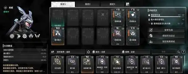 追求最高增伤的选择,但由于兔兔的基础暴击仅10%,即使装配满技能暴击类模块,最终收益低得可能没有一个其他增伤类模块来得优秀,在牺牲生存类模块的情况下更显得可有可无。
