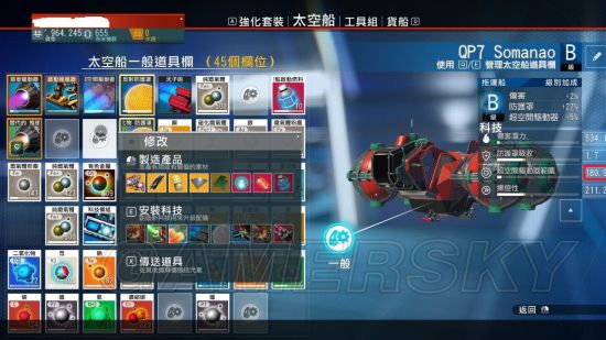 强化套装、太空船、工具组等都会分成一般与科技两栏让你装科技模块。