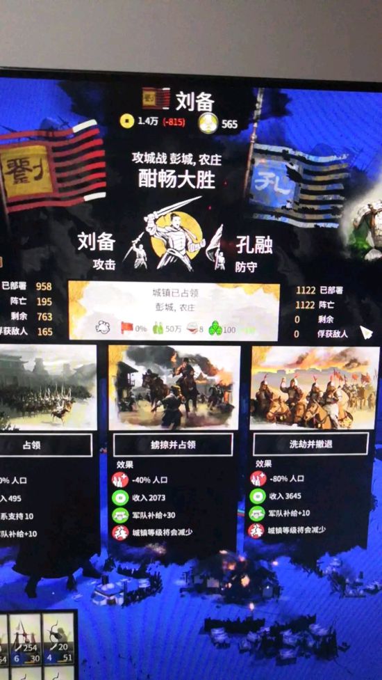 当时诸葛刚来一回合,兵都没补满,虽然守下来了,但只剩一个城和孔庙了,想想还是重开吧,堂堂刘备总不能去当土匪吧。其实最主要的是这个档一直打架,每打一次,总是要反复读档。