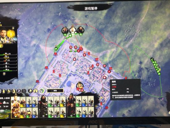 接着我就往上打。发现黄邵在占孔融的地,我就没先打2,而是先打3左边的镇,然后打3,最后打2,于是悲剧就发生了,我打2要围城,结果又来了一堆黄邵的人,于是我要用土味军队,打黄邵主力满编,加上半编军,再加上城里的援军。