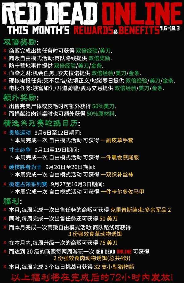 《荒野大镖客OL》9月更新带来了新的活动赛事和服装奖励,想要了解本次更新内容的玩家请看下面“时光和你都很暖”带来的《荒野大镖客OL》2022年9月月度更新介绍,希望能够帮助大家。