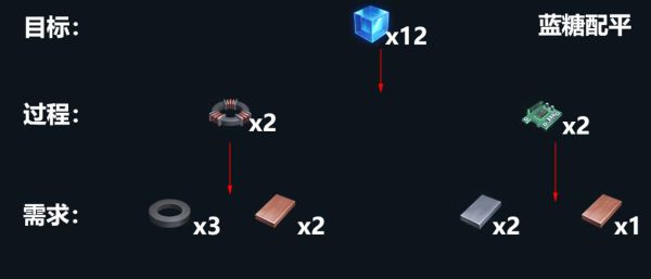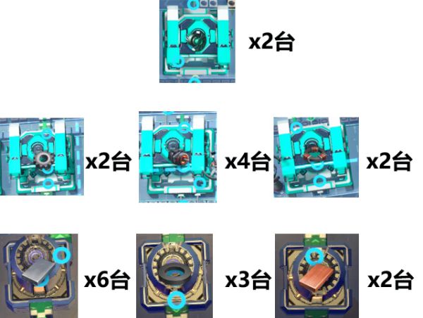 所以在以下计算配平的公式中,制造台均以MK.II作为计量单位。例如以上图的绿马达为例,数字2就代表有两台MK.II的制造台。