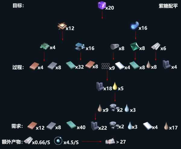 这个紫糖公式只能算勉强配平,如果非要每一项都取整数,结果就是必须造60层紫糖研究塔才行,而这显然超出合理范畴了。