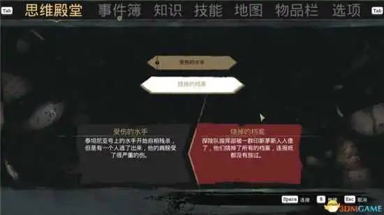 另外,暂停菜单中还有一个重要的“思维殿堂”分栏。