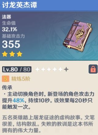 目前貌似只有平民的肉钟离和肉胡桃使用它最合适不过,不过如果你打算当一个史莱姆杀手,这把武器完全可以堪比五星。
