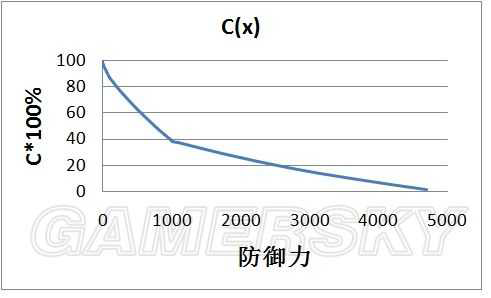 大体上防御力小于1000时,每100点C减少5.3%, 大于1000时每100点C减少1%