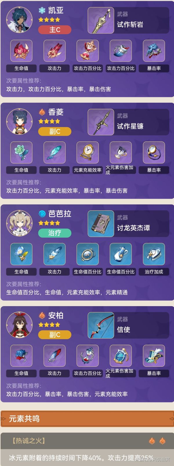 圣遗物三星四星都行,属性用符合各自角色的就行了,副词条先不管。该升级升级,别怕浪费,后期当做狗粮就好了。角色也一样,该升级就升级。