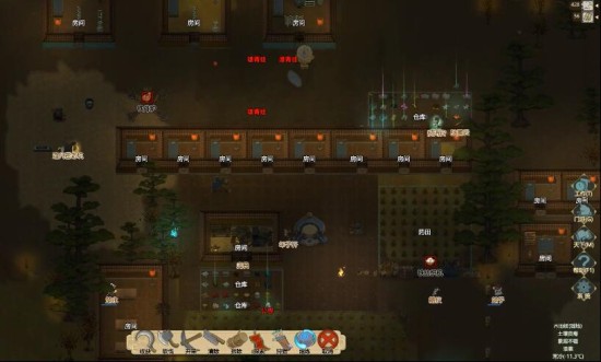 因为地大的原因,敌人来了没找到人时只还手不会先攻击。为预防敌人昏迷苏醒偷东西,可以建设4×4大的纯寒精房间,保证被移动进去的敌人爬都爬不起来!尸体尽量看一下,有时装备栏里有道具书可以学习并传授。