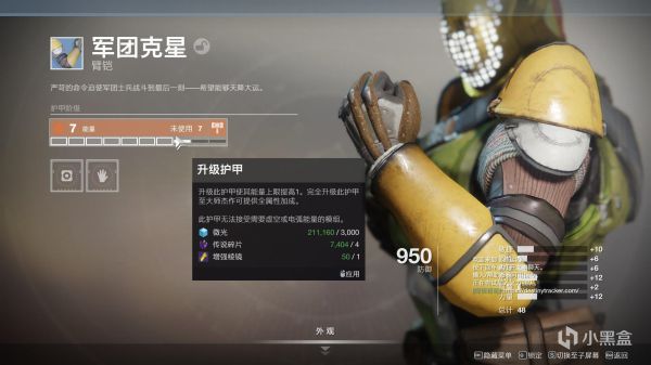 5.完成以上步骤后,回到装备界面,然后将刚刚升级的手臂长按F拆解掉,那么你就能够获得6个强化核心了。除去升级所消耗的3个强化核心和1个增强棱镜(碎片和微光自行忽略),其兑换比例为1增强棱镜=3强化核心。