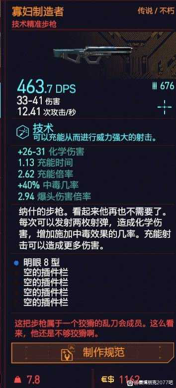 《赛博朋克2077》玩家们能够使用精准步枪在远处消灭敌人,如果能够使用威力足够大的枪,相信各位玩家在夜之城的探索之旅将会容易不少,下面请看玩家“圣皇丨逍遥”分享的《赛博朋克2077》高伤害多弹片精准步枪推荐,希望能为各位玩家带来一些帮助。