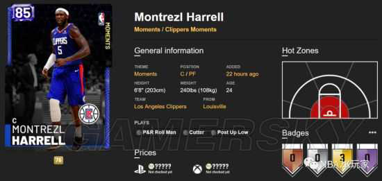 《NBA2K19》蓝宝石蒙特雷斯哈雷尔是最近放出的快船时刻卡,那么其属性、徽章如何?很多玩家还不是很了解,今天给大家带来“ASPIRIN”分享的《NBA2K19》蓝宝石哈雷尔时刻卡属性、徽章分析,希望大家喜欢。